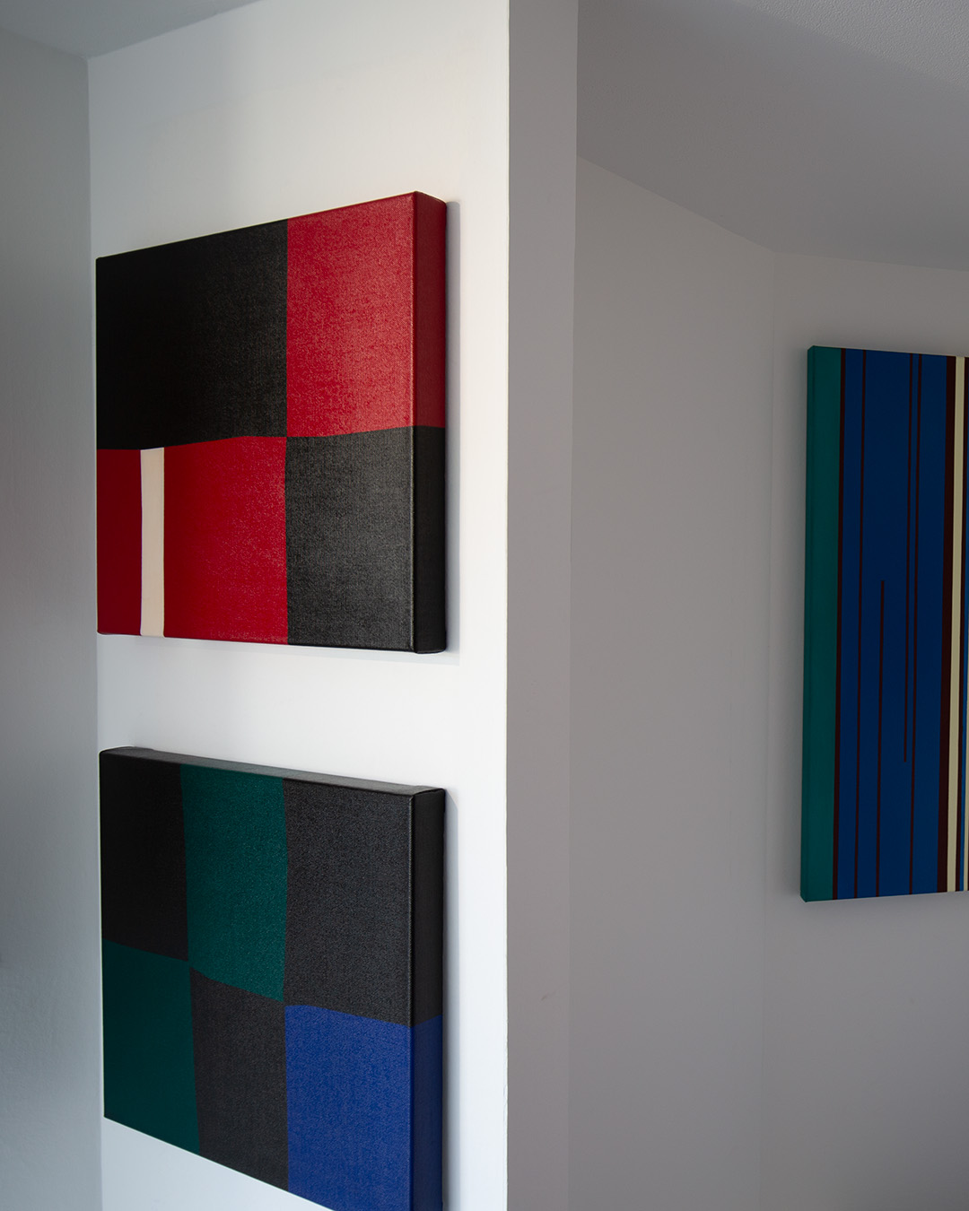 In #292, strong red and black fields form a precise geometric structure.
